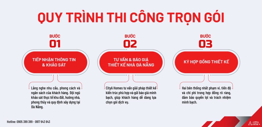 Tại CityA Homes, mọi dự án thiết kế nhà đẹp Đà Nẵng đều được thực hiện theo quy trình chuyên nghiệp, minh bạch và tối ưu: