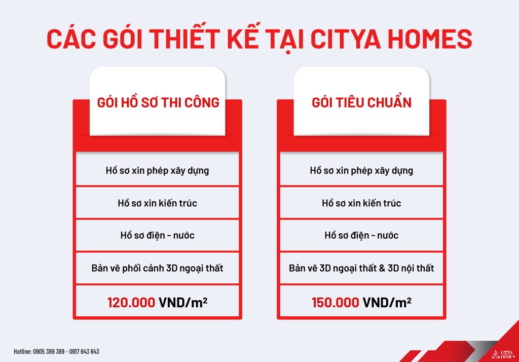 CityA Homes – công ty thiết kế nhà đẹp Đà Nẵng mang đến 2 gói thiết kế linh hoạt phù hợp với nhu cầu và báo ngân sách của từng khách hàng: Gói Hồ sơ thi công và Gói Tiêu chuẩn. Mỗi gói đều bao gồm hồ sơ xin phép xây dựng, hồ sơ kiến trúc, hồ sơ điện nước và bản vẽ phối cảnh 3D giúp gia chủ dễ dàng hình dung không gian trước khi thi công.